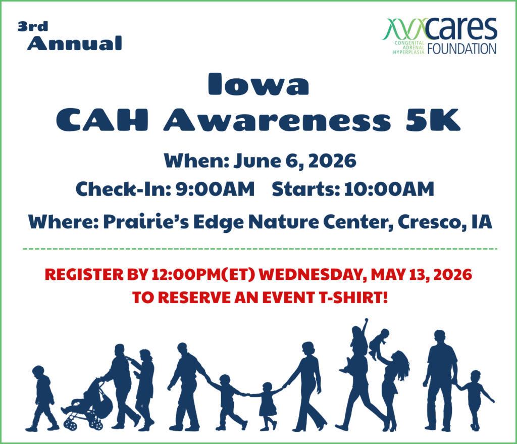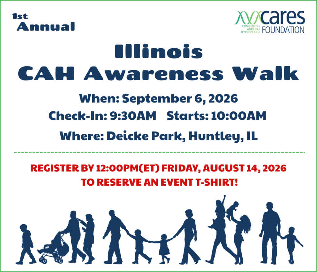 We are excited to continue sharing these incredible events with you! Participants will have the chance to connect other CAH families with and spread awareness for the community, while staying active and having fun together! To register for an upcoming CAH Awareness Walk, please see below.